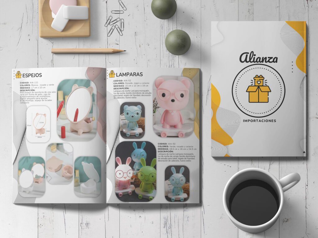 Catálogos , organizados y atractivos que presentan tus productos o servicios de forma clara y profesional. Ya sea para impresión o formato digital, teniendo en cuenta cada detalle: desde la estructura y jerarquía visual, hasta la tipografía y fotografía.
